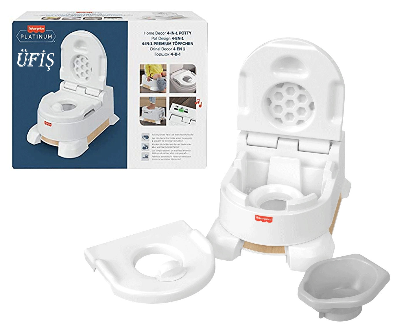 - Fisher-Price 4'ü 1 arada premium potty, çocuklar için minyatür bir tuvalete benziyor. Bu ürün ile küçükler tuvalete gitme alıştırması yapabilir. Lazımlık, küçükleri güvende tutmak için tutması kolay tutacaklara ve çıkarılabilir, temizlemesi kolay bir kaseye sahiptir. Küçük çocuklar yetişkin tuvaleti için hazır olduklarında, çıkarılabilir klozet eki ek destek sağlar ve lazımlık banyoda tabure olarak kullanılabilir. Arkadaki aydınlatmalı düğmelerle gerçekçi yıkama sesleri etkinleştirilir. Ek olarak, önceden programlanmış iki etkinlik zamanlayıcısı, diş fırçalama ve el yıkama gibi önemli alışkanlıkları teşvik etmek için şarkılar çalar. Çocukların lazımlığı önce bir eğitim tuvaleti, sonra bir klozet eki ve son olarak bir tabure olarak hizmet vermektedir.