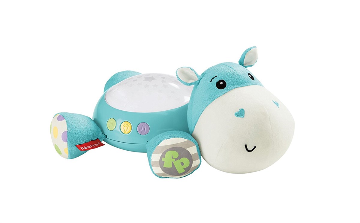 - Bu sevimli peluş hipopotamı şifonyerinizin üzerine yerleştirin ve sırtındaki projektörden yıldızlı ışık gösterisini başlatın.
