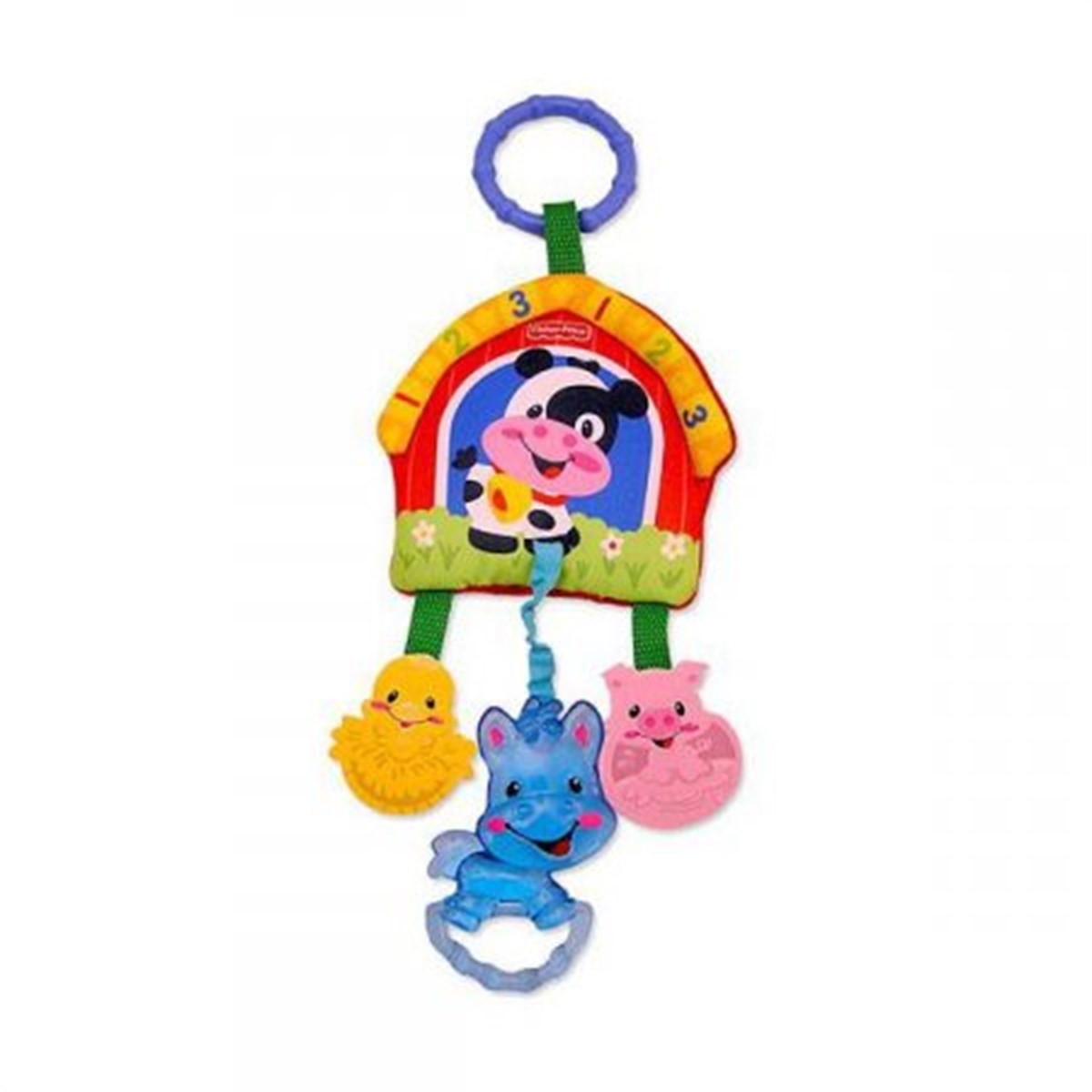 Dişlenebilir sarı civciv, mavi at ve pembe domuzcuk bebekleri rahatlatacaktır. Ayrıca bebekler, mavi atı çektiğinde çalan ses efektleri ve müzik ile çok eğlenecektir. Üzerindeki takma halkası sayesinde dişlik araba koltuğu, jimnastik merkezi, puset gibi istenilen yere takılabilir. 3 adet AG13(LR44) düğme pil dahildir.