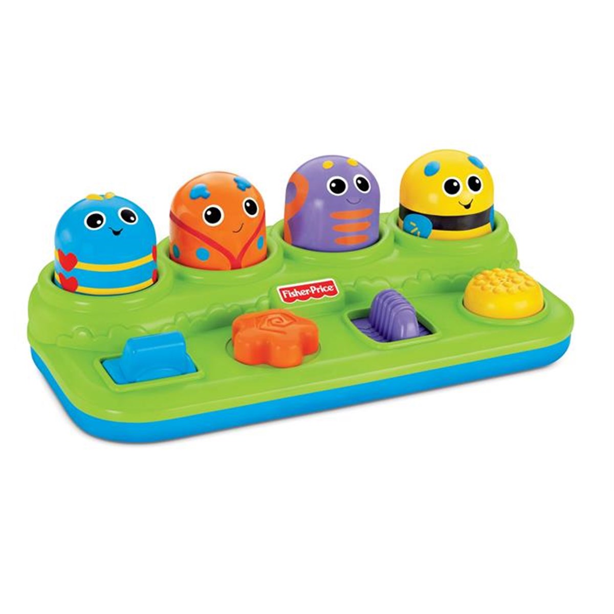 Fisher Price'dan fırlayan oyun için neşeli böcekler seti. Bebeğin oynayabileceği 4 farklı eğlenceli böcekten oluşur. Bebeğin kaydırma, çekme, değiştirme ve döndürme yeteneklerini geliştirir. Fırlayan böcekler bebekleri eğlendirir.