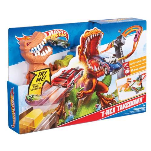 Türkçe 10 farklı dinazor sesi çıkartan Çılgın Dinazor T-Rez Oyun Seti. Dinazor arabaları yemeği çok seviyor, amaç; onu alt ederek arkadaşını kurtarmak . İçinde 1 adet Hot Wheels araba bulunur.