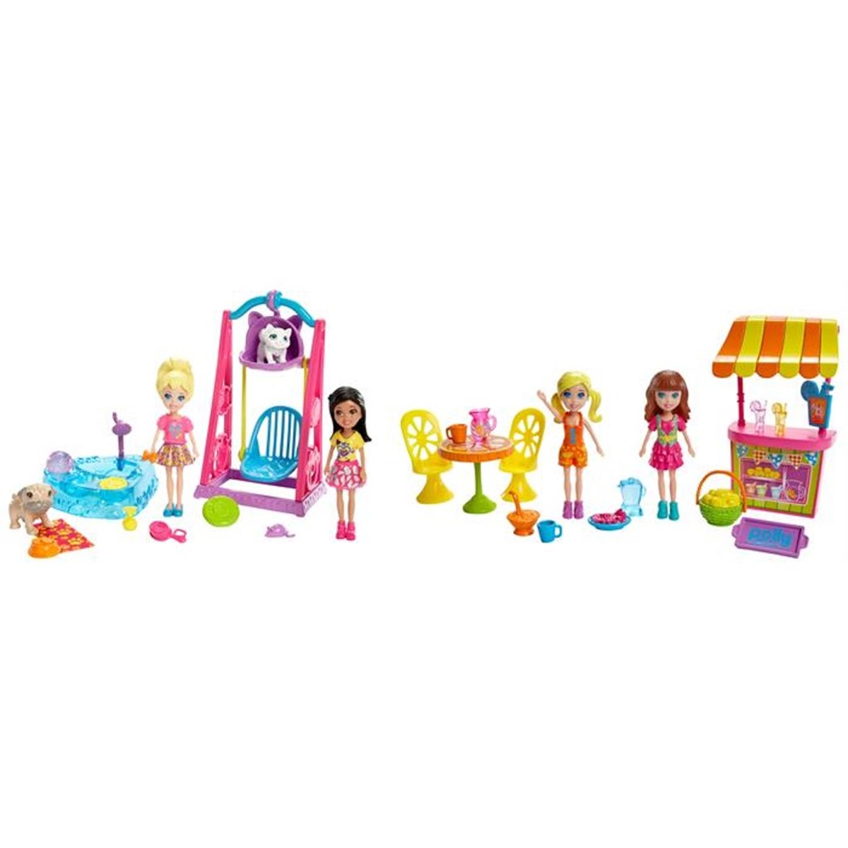 Polly ve arkadaşları eğlenceli bir gün için hazırlar. Kızlar salıncakta sallanabilir, limonata içmeye veya dondurma yemeye gidebilirler. Polly Pocket Gezide Oyun Seti'nin 2 farklı modeli bulunur. Her biri ayrı ayrı ve stoklara bağlı olarak satılır.
