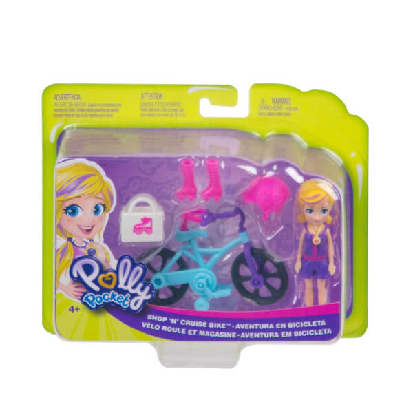 - Polly Pocket ve Bisikleti Oyun Seti serisi, şehirde gezinip alışveriş merkezinde bir şeyler atıştırmak ya da başka eğlenceli yerleri ziyaret etmek için iki adet araçlı set içerir.