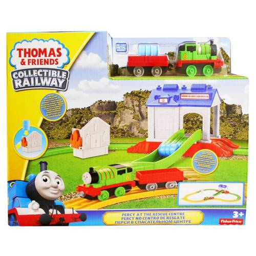 - Oyun setine Percy tren ve kargo vagonu, raylar, su bidonu, rampa, yangın parçası ve kurtarma merkezi binası dahildir.