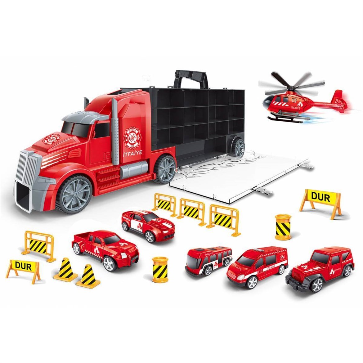 - Çocuklar itfaiye aracını diğer araçları taşımak için bir taşıma çantası olarak kullanabilir ve bu sayede oyun setini dilediği yere taşıyabilir.