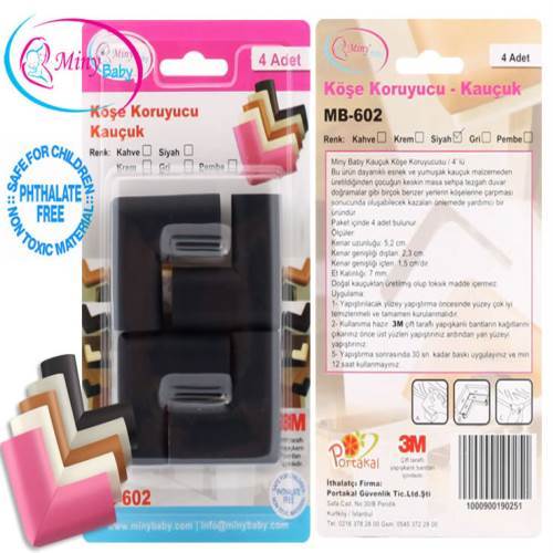 Miny Baby MB-602 Köşe Koruyucu Kauçuk 4'lü - Siyah
