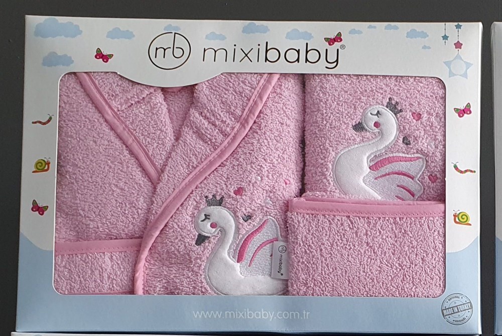 Mixi Baby 3 Parça Bebek Bornoz Seti-Pembe