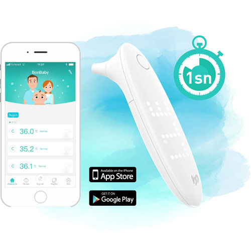 - Sıcaklık verileri Bluetooth vasıtasıyla BonBaby aplikasyonuna aktarılır, bebeğinizin sağlığını ve gelişimini takip etmenize olanak tanır.
