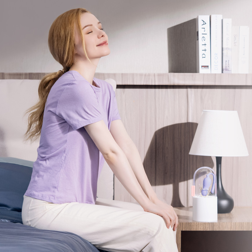 - 3. Egzersizin Keyfini Çıkarın Lilac'ı gösterge ışığı yukarı bakacak şekilde yavaşça vücudunuza yerleştirin ve egzersize başlayın. (Suda çözünür kayganlaştırıcı veya prezervatif kullanılması önerilir)