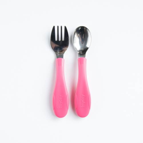 - Çocukların rahatlığı ve kullanım kolaylığı için tasarlanan çatal ve kaşık, kaygan olmayan yumuşak kulplarla zenginleştirilmiş, geniş renkli tutacaklara sahiptir.