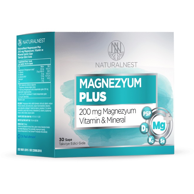 - NaturalNest Magnezyum Plus vitamin ve mineral içeren efervesan saşe formda takviye edici gıdadır.
