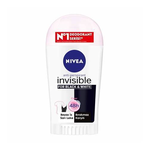 - Beyaz giysilerinizde sarı, siyah giysilerinizde de beyaz ve ıslak görünümü ortadan kaldıran pudralı Nivea Stick Black&White Power, terlemeye ve ter kokusuna karşı 48 saat koruma sağlar.