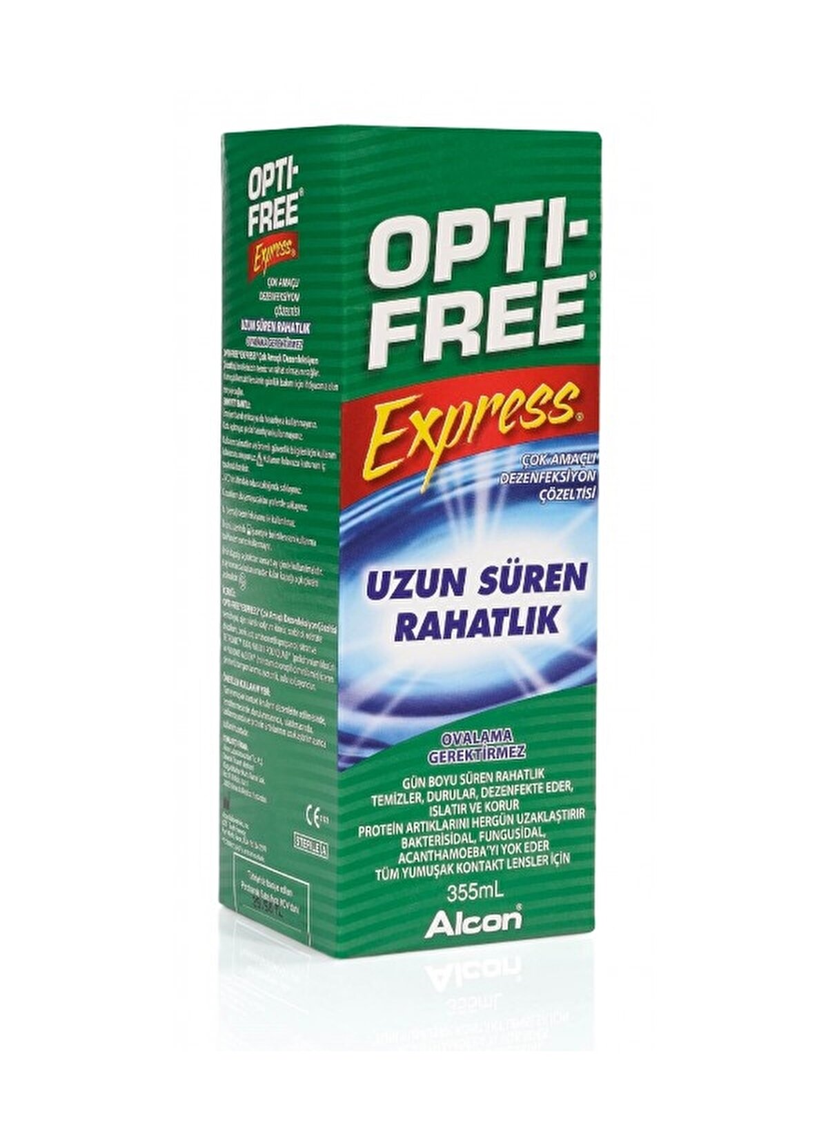 OPTI-FREE EXPRESS 355 ml. lik plastik şişede lens saklama kabı ile satışa sunulur.