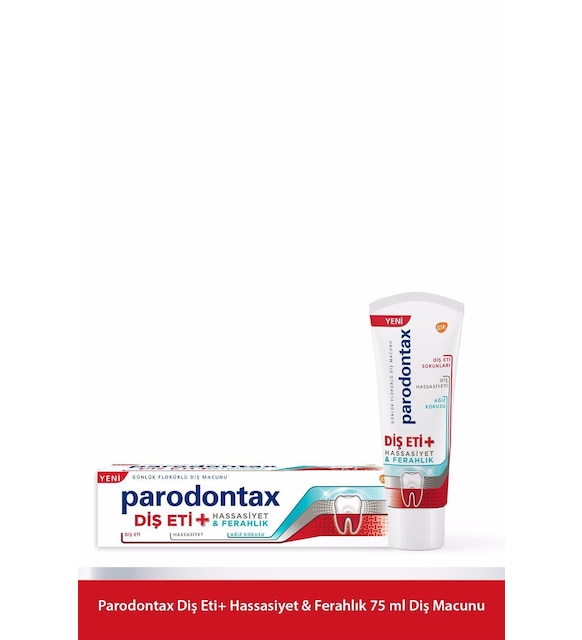 - Parodontax Diş Eti+ Hassasiyet ve Ferahlık Diş Macunu, diş eti çizgisinde biriken plakların neden olabileceği ağız kokusu ve diş hassasiyetini hedef alan, etkinliği bilimsel olarak kanıtlanmış günlük bir diş macunudur.