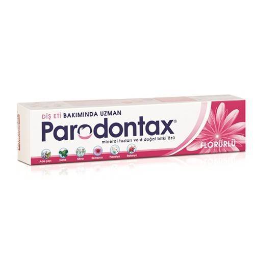 Parodontax Florürlü diş macunu adaçayı, nane, papatya, ekinase, mirra ve ratanya adlı altı tıbbi bitki özü, yüksek miktarda sodyum bikarbonat ve bu formüle ilaveten diş minelerini güçlendirici florür de içermektedir. Canlandırıcı ve güçlendirici etkisi ile sağlıklı diş ve dişetinin korunmasını sağlamaya yardımcı olur. Her gün kullanılan Parodontax, diştaşı oluşumunu geciktirmeye ve dişetini korumaya yardımcı olur.