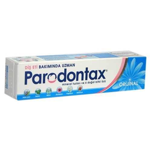 Parodontax Orijinal diş macunu adaçayı, nane, papatya, ekinase, mirra ve ratanya adlı altı tıbbi bitki özü ve yüksek miktarda sodyum bikarbonat bulundurur. Canlandırıcı ve güçlendirici etkisi ile sağlıklı diş ve dişetinin korunmasını sağlamaya yardımcı olur. Her gün kullanılan Parodontax, diştaşı oluşumunu geciktirmeye ve dişetini korumaya yardımcı olur.