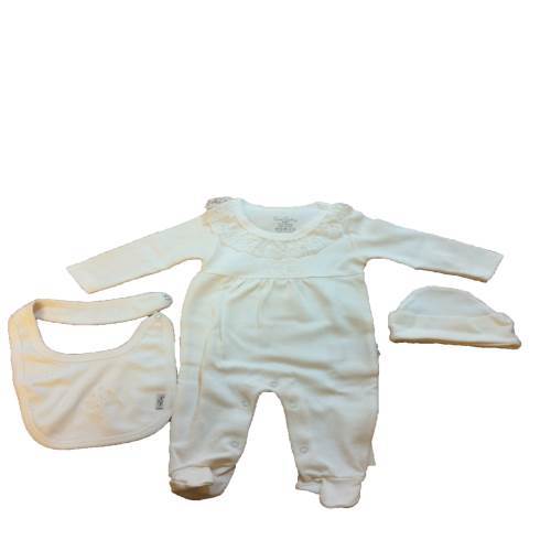 Pierre Cardin PC-524-0612-2 Kutulu Dantel Yaka 3'lü Set - 0-3 Ay - Ekru