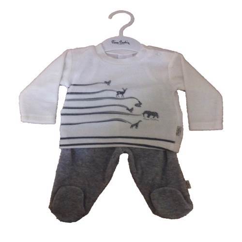 Pierre Cardin PC-622-0603-5 Kadife Çizgi Baskılı Patikli 2'li Takım - 3-6 Ay - Gri