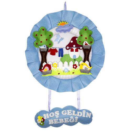 Piramit Kuş Elbiseli Kapı Süsü Mavi