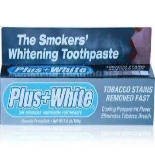İşte sigara içenlerin uzun yıllardır beklediği diş macunu! Sigara içenler için yapılmış kahverengimsi tütün lekelerini çıkartan ve aynı anda dişlerinizi beyazlatan özel bir diş macunudur. Sigaradan dolayı oluşan lekeleri ve sararmaları önleyici özel bir leke çıkarıcı kombinasyonu ile oluşturulmuştur. Böylece Plus White&®`ı kullanarak daha beyaz ve daha parlak görünümlü dişlere sahip olabilirsiniz. Aynı zamanda tartar kontrolüne yardımcı olarak tartar plaklarını çıkartır ve diş çürüklerine karşı florid etkili koruma sağlar. Serin nane aromalı kokusu sayesinde “sigara kokusu” saatlerce sizden uzak durur.