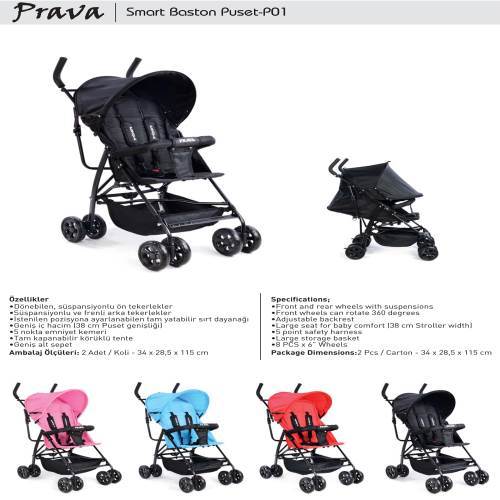 Prava P01 Smart Baston Bebek Arabası - Kırmızı