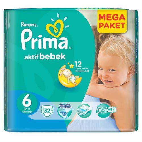 Prima Aktif Bebek Extra Large Mega Paket 6 Numara 32 Adet 15+ kg