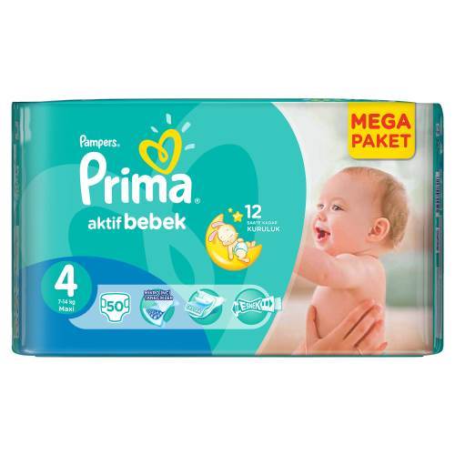 Prima Aktif Bebek Maxi Jumbo Paket 4 Numara 50 Adet 7-14 kg