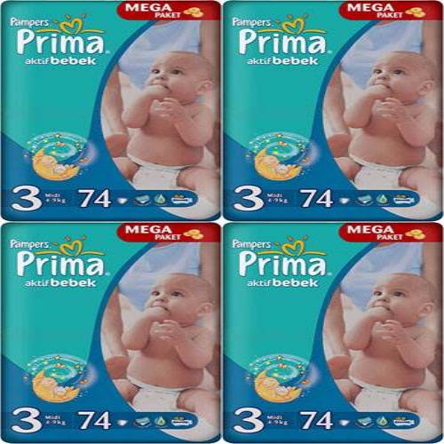 Prima Aktif Bebek Mega 3 Numara 74 Adet 4-9 kg 4'lü