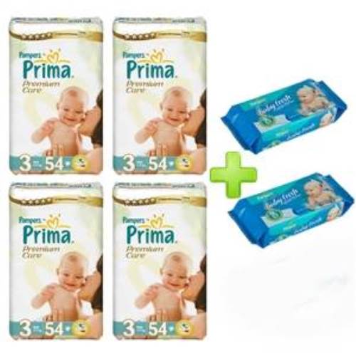 Prima Premium Care No:3 Midi 4'lü Paket 4-9 Kg 2 Adet Pampers Islak Mendil Hediyeli