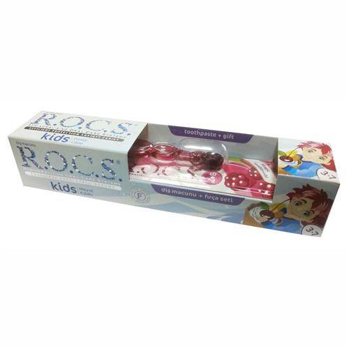 R.O.C.S. 3-7 Yaş Diş Macunu (Meyve Külahı) ve Diş Fırçası - Kırmızı