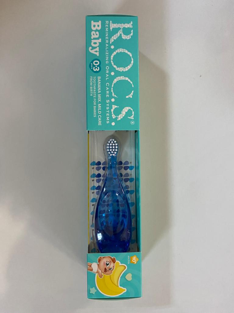 R.O.C.S. Baby 0-3 Yaş Muz Püresi Tadında Diş Macunu 45g + Diş Fırçası Seti Mavi