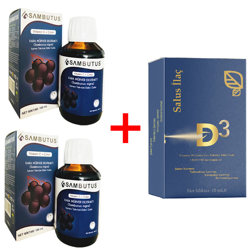 Sambutus Kara Mürver Ekstresi 100 ml 2 Adet + Vitamin D3 500 IU İçeren Sprey 15 ml
