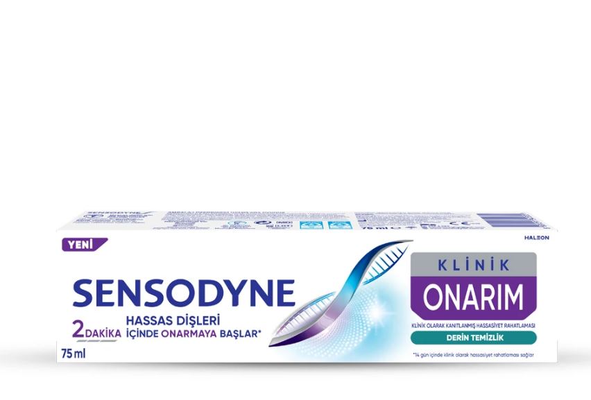 - Sensodyne Klinik Onarım flörürlü diş macunu günlük kullanım ile hassas dişlerinize bakım sağlar.
