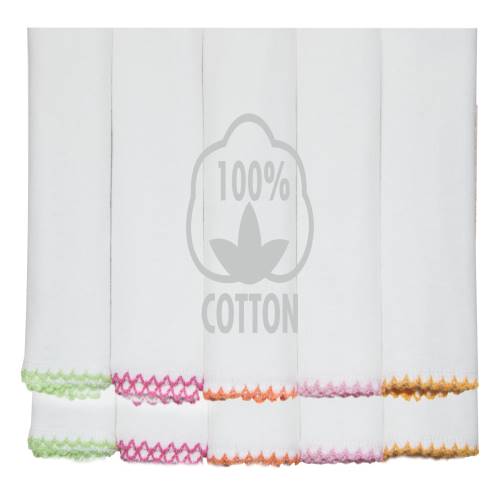 Süper emici, çift kat %100 pamuk penye kumaştan üretilmiştir. Bir paket içerisinde farklı renklerde nakışlar ile süslenmiş 10 adet mendil bulunmaktadır.