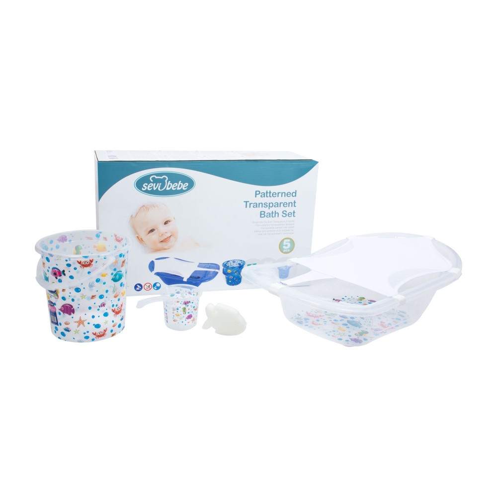 Sevi Bebe Şeffaf Desenli Giderli Bebek Banyo Seti - Beyaz
