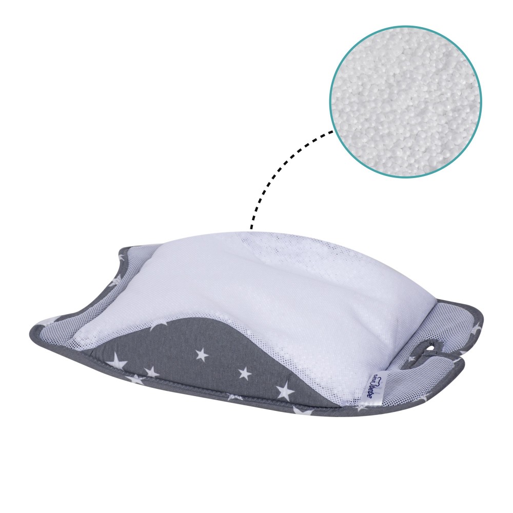 - Bel desteğinde bulunan boncuk strafor sayesinde, bebeğin sırtının geldiği kısım bebeğin vücut yapısına göre şekillenir.