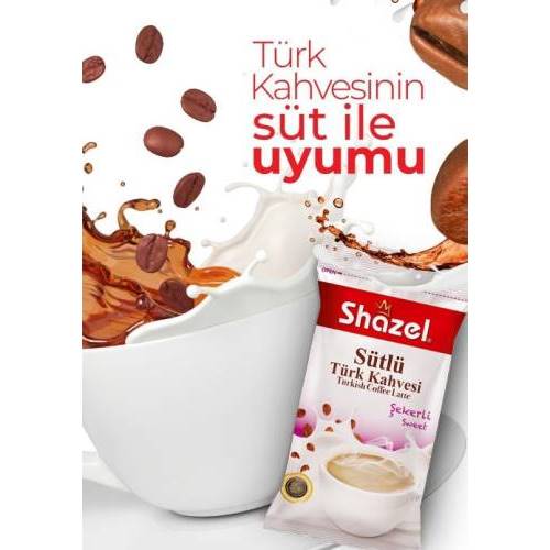 - Paket içerisinde 18 gr.'lık Shazel Hazır Sütlü Türk Kahvesi bulunmaktadır.