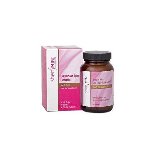 Shen Min Tablet (Kadın) Kadınlarda çeşitli saç hastalıkları (androjenik alopesia areata ve telojen effluvium) ve menopoz dönemine bağlı olarak görülen saç kaybı durumlarında saç beslemesine destek olarak kullanılır.