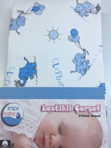 Ships Baby Poplin Lastikli Bebek Çarşafı (70X135) Mavi Fil