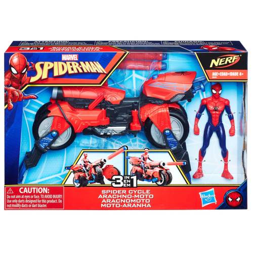 Spider-Man, üç farklı oyun moduna sahip Örümcek Motosiklet ile aksiyona hazır! Araç, Motosiklet modundan 4 ayaklı Örümcek Araç moduna dönüştürülebiliyor. Çocuklar, aracın her üç moduyla da Nerf dartlarını fırlatabiliyor. Pakete 15 cm boyunda Spider-Man Figürü, 2 Nerf dart ve Örümcek Motosiklet dahil. Araç, 15 cm boyundaki çoğu figür (her biri ayrı satılır) ile de uyumlu./p>Yaş Grubu : 4 yaş ve üzeri