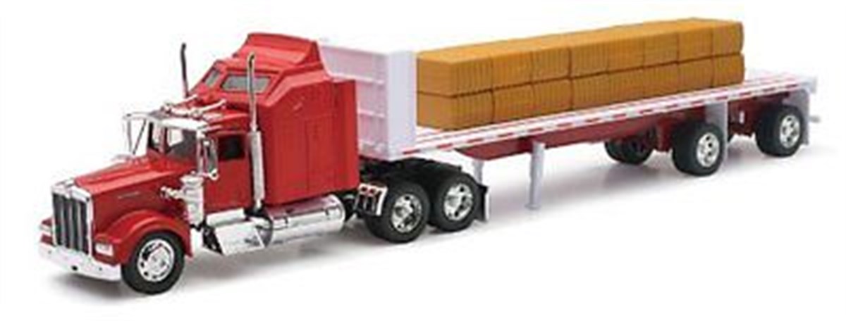 Sunman Kenworth W900 1:32 Scale Toy Truck With Flat Bed Trailer And Hay Bales S00010563
