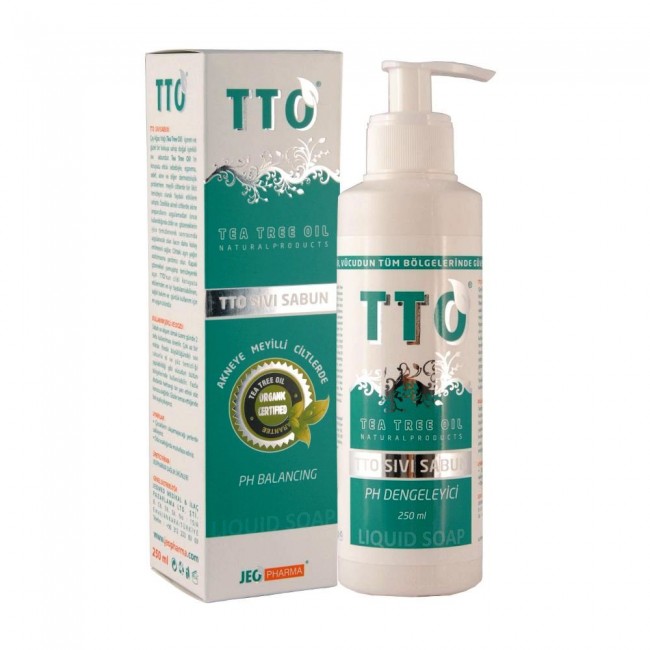 Tea Tree oil Çay ağacı yağı demektir TTO Sıvı Sabun Çay ağacı yağıiçeren bir temizleyicidir. Hoş kokulu olan bu tto sıvı sabun içeriğinde bulunan çay ağacı yağının etkilerini sizlere sunmaktadır.Tüm vücuda uygulanabilen bu ürün özellikle akne mmeyilli ve problemli ciltlerde likit temizleyici olarak faydalıdır. Akne preperatları öncesi uygulandığında cildi temizler uygulanacak ilacın emilimini kolaylaştırır. Gözenekleri açar. Aşırı yağ salgılamasının azaltılmasına yardımcı olur. Günlük kullanım için uygun bir üründür. 250 ml olarak satışa sunulmuştur. TTO Tea Tree Oil Sıvı Sabun Kullanımı: Hafif ıslatılmış cilde bir doz kadar sıvı sabun iyice yedirilerek maske şeklinde sürülür.