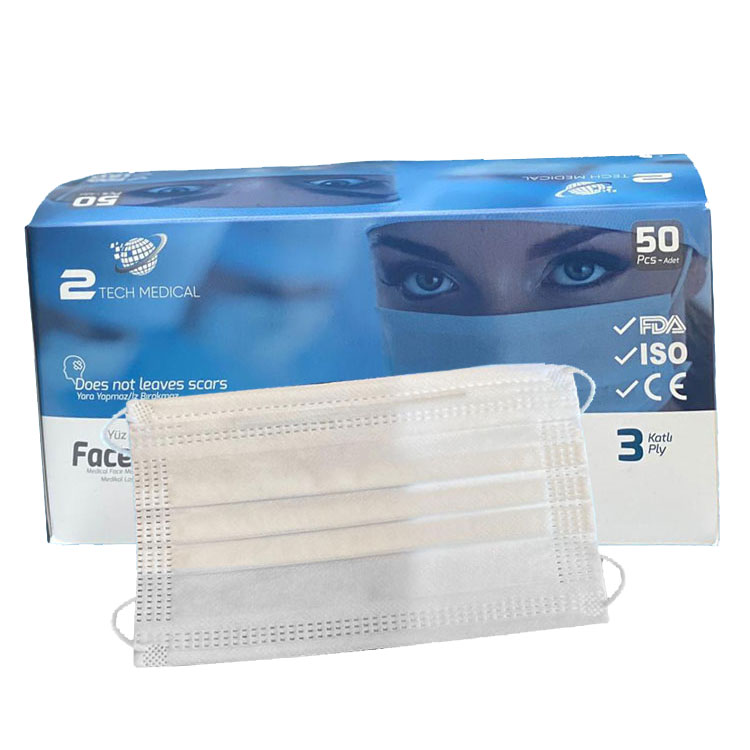 Two Tech Medical Burun Telli 3 Katlı 90gr Meltblown Filtreli Yetişkin Maske 50'li - Beyaz