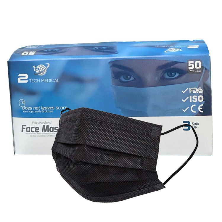 Two Tech Medical Burun Telli 3 Katlı 90gr Meltblown Filtreli Yetişkin Maske 50'li - Siyah