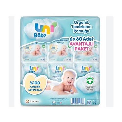 Uni Baby Bebek Temizleme Pamuğu 60 Lı- 6 adet