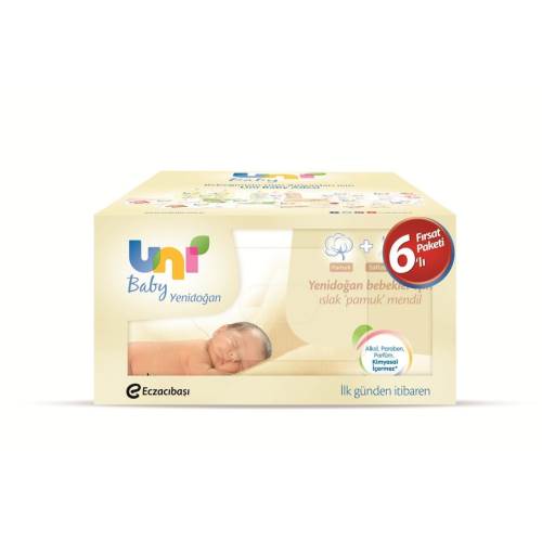 Uni Baby Yenidoğan Islak Pamuk Mendil 6'lı Fırsat Paketi