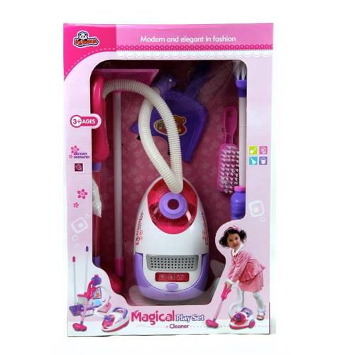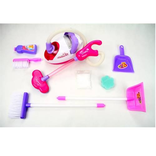 Pilli Işıklı Oyuncak Elektrik Süpürgesi Fırça ve Faraşlı