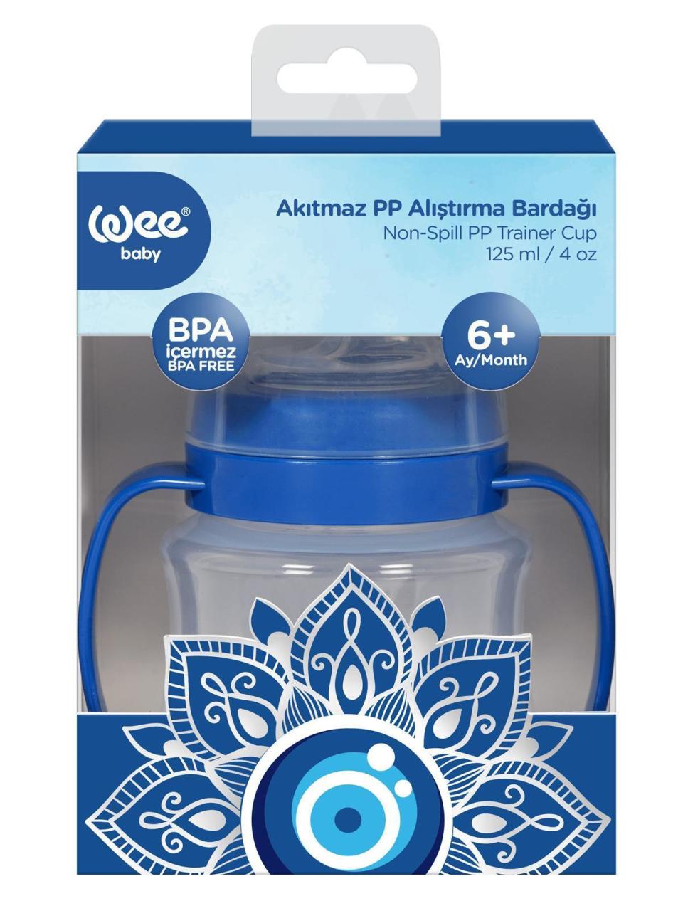 Wee Baby 262 Nazar Boncuğu Desenli Akıtmaz Kulplu PP Alıştırma Bardağı 125 ml