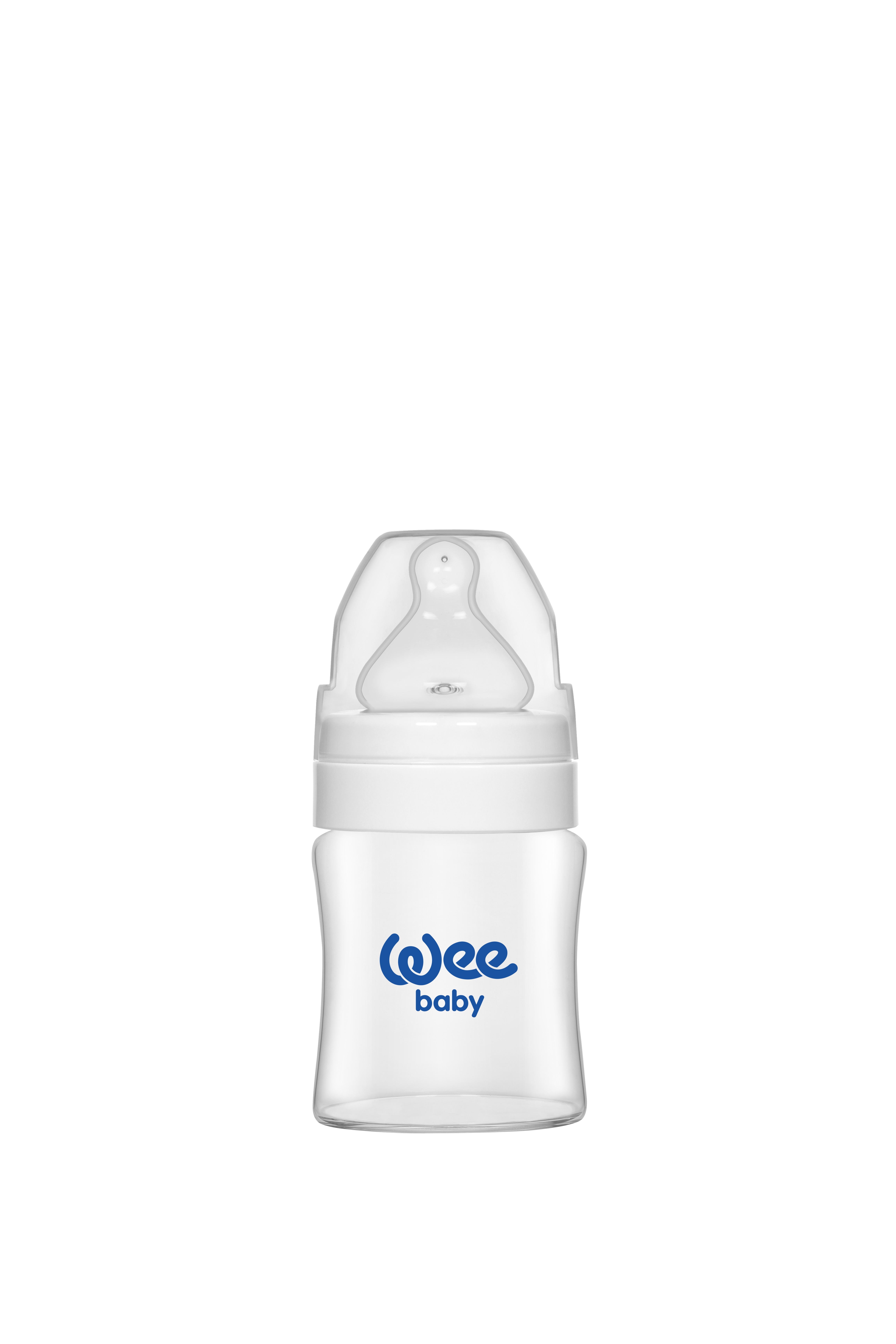 Wee Baby 787 Geniş Ağızlı Isıya Dayanıklı Cam Biberon 120 ml - Beyaz