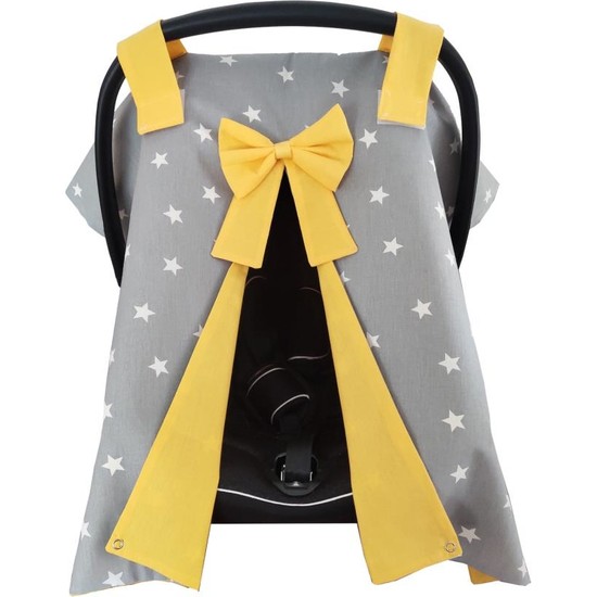 Yuar Baby Gri Tabanlı Yıldız Desenli Puset Örtüsü-Sarı